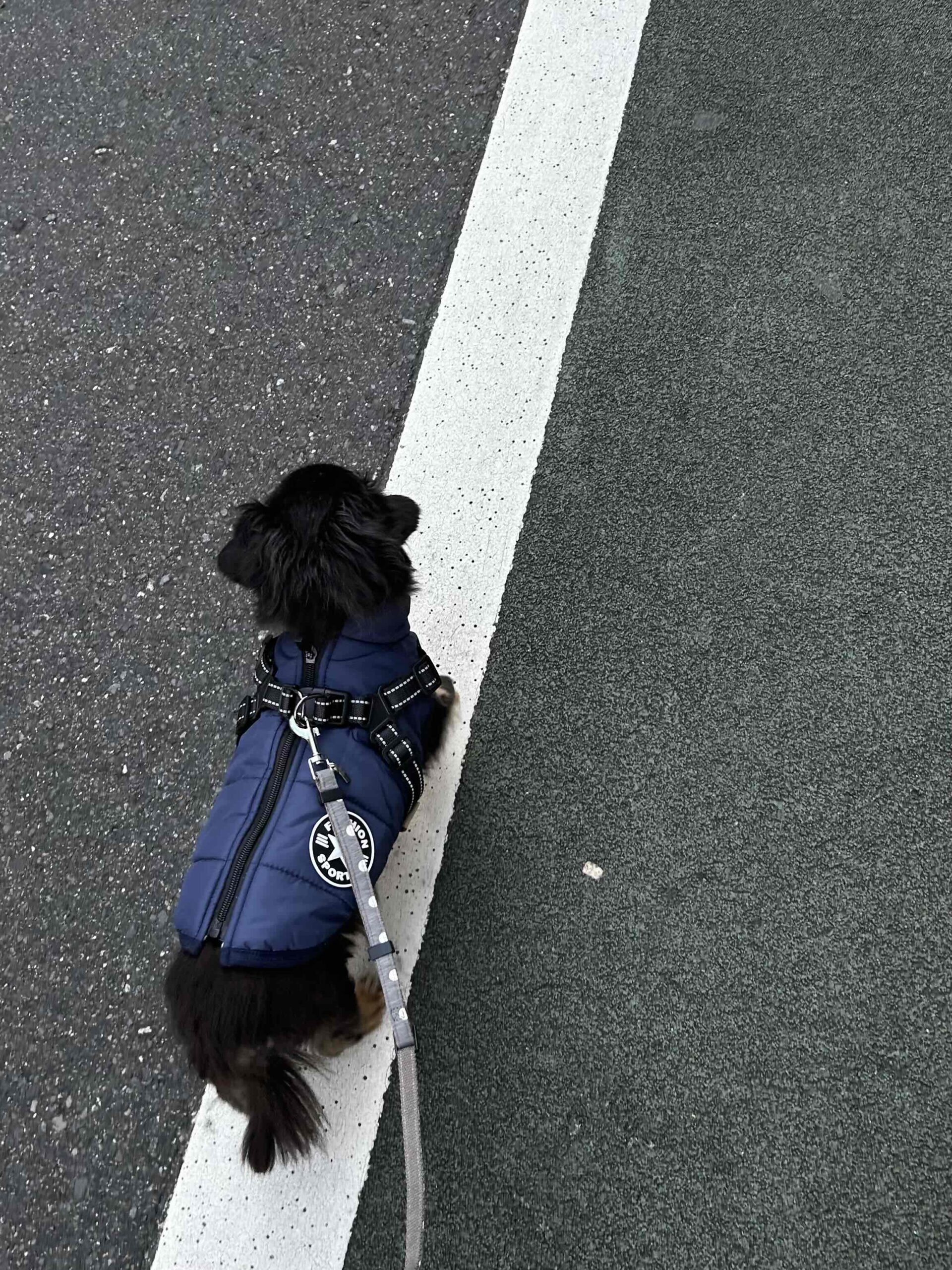 お散歩中なぜか白線の上を歩きます笑