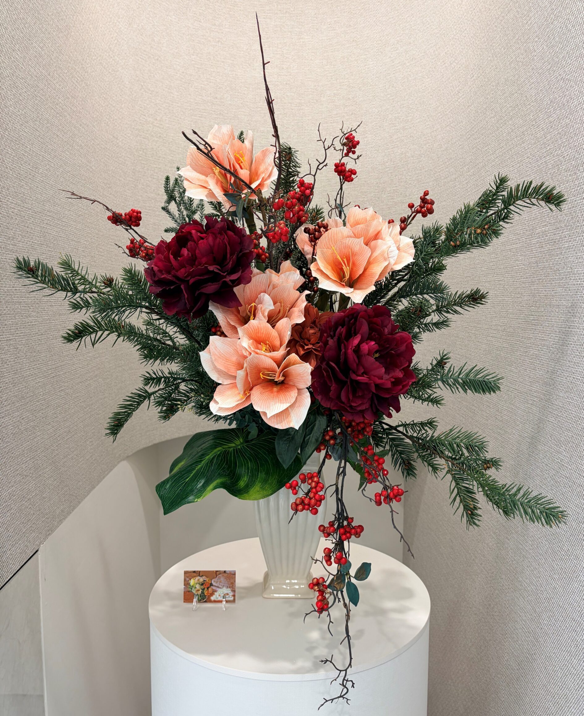 ↑冬のフラワーアレンジメントです。クリスマス🎄にもお正月🎍にも合う素敵なデザイン✨